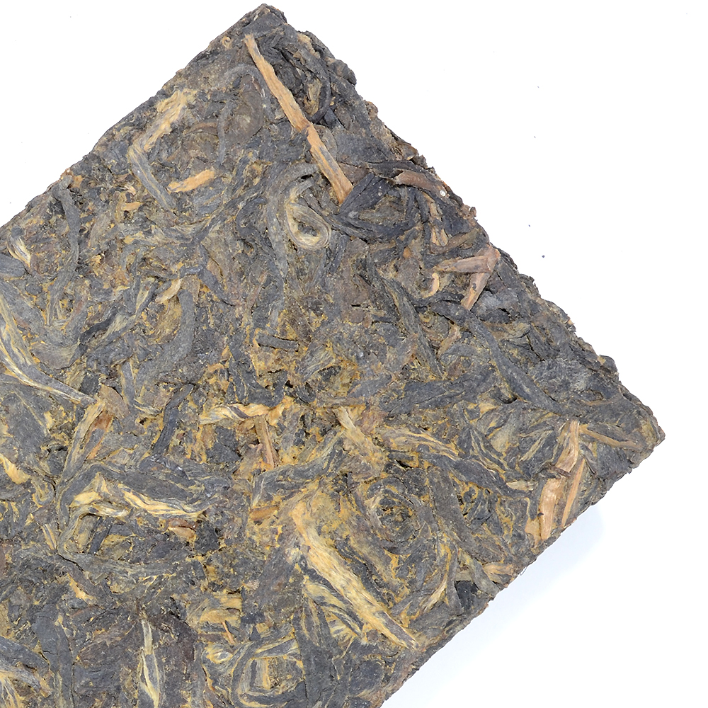 This Liubao from 2015 shows a slight sprinkling of elusive golden flowers; however, as you undoubtedly are aware, not all Liubao shows its golden ‘flower’ particles. Due to its having been compressed, a brick often shows more golden particles than its loose leaf ‘brother’, but not always. This tea is from several large (45kg!) baskets of loose leaf Liubao that was aged nicely for three years in a warehouse in eastern China. The original baskets were opened, compressed into ‘bricks’ in 2018, and the tea was made available for curing. Fortunately, we knew of it, so some came our way in 2019.