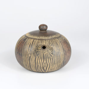 Qinzhou Nixing pottery is produced in Qinzhou city in China’s Guangxi province. It, along with Yixing Zisha, Jianshui and Rongchand make up China’s four famous types of pottery. Nixing is made from a mixture of mineral rich clays collected from the east and west banks of the Qinjiang river in Qinzhou. It is a smooth and dense clay, with good elasticity, which allows potters to shape the clay into a variety of shapes. These properties also make it a great clay to carve with detailed designs. Nixing pieces are formed on a potter’s wheel and kiln fired. Finished Nixing pieces can vary in color from bronze to reddish brown and even purple. All color differences are the result of the clay composition, kiln effects and finish polishing/burnishing.