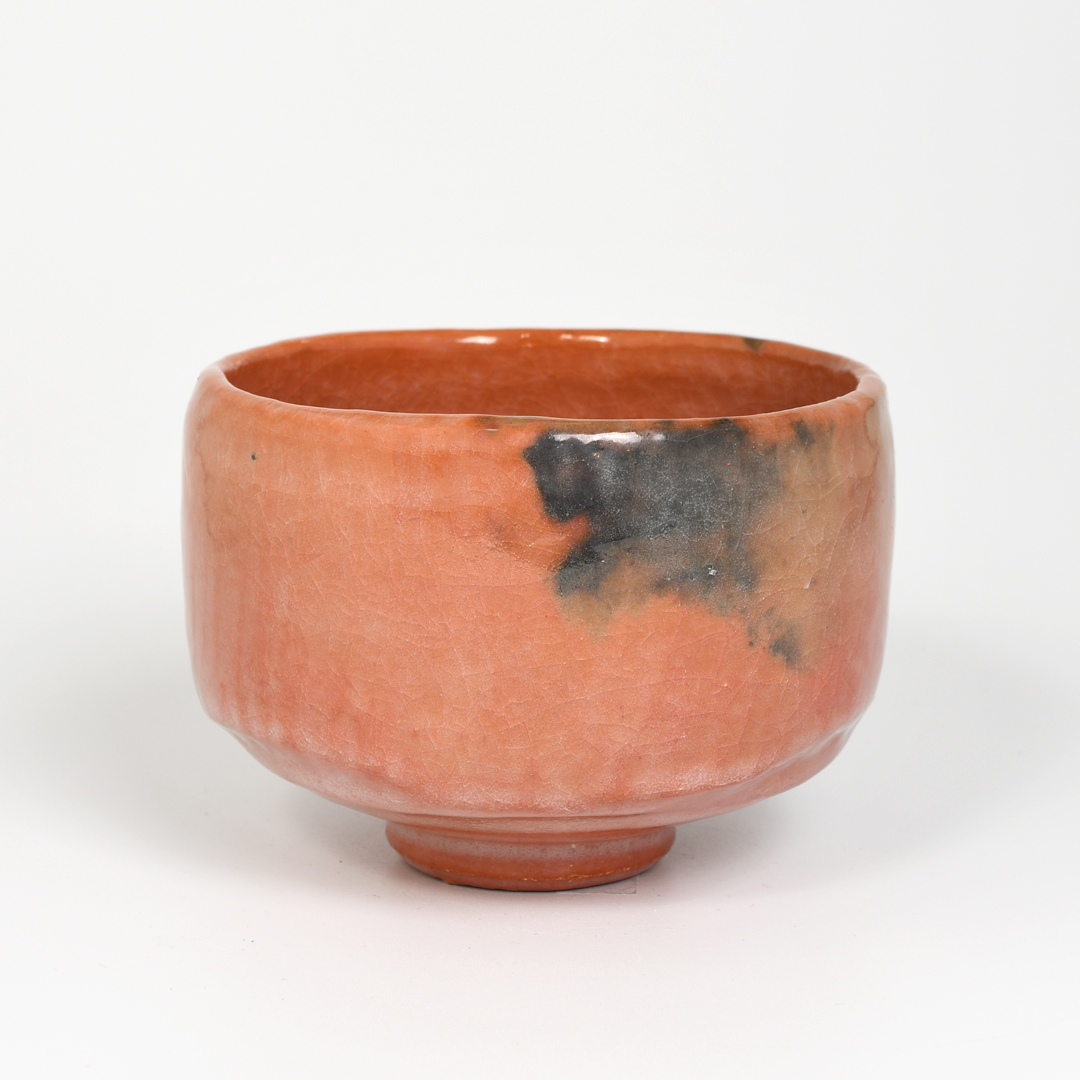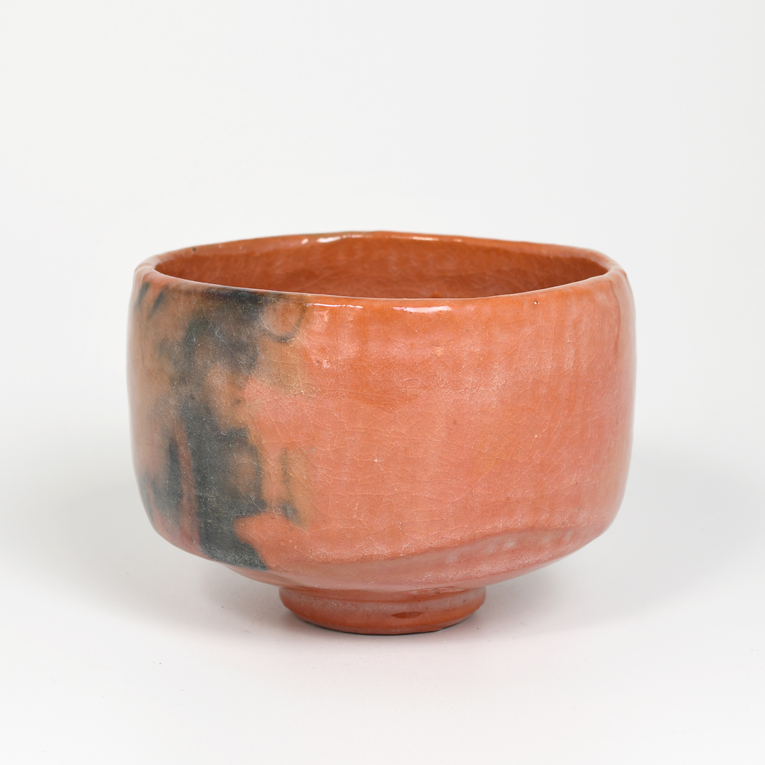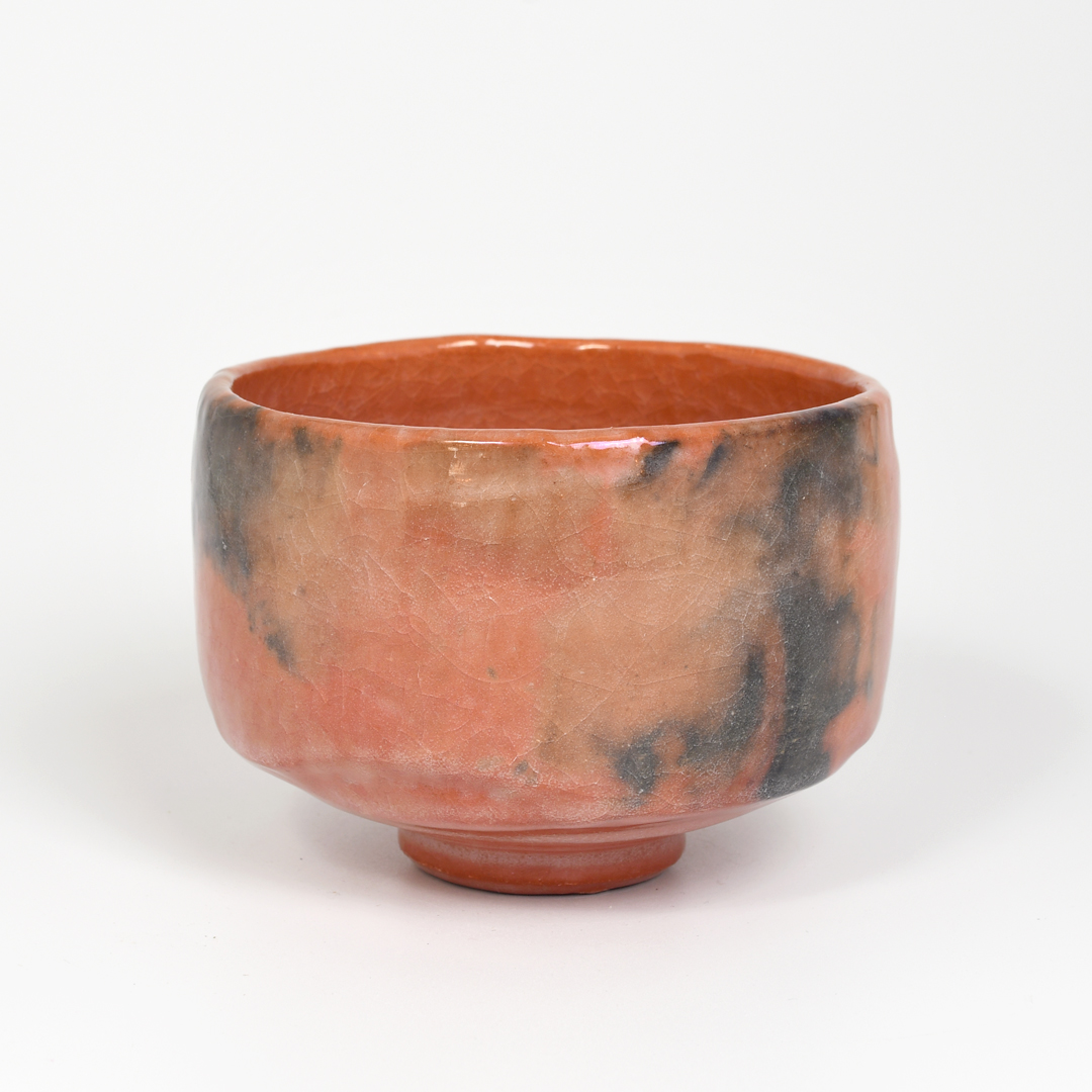 This stunning Aka-yaki (red) Raku tea bowl is a replica of one of the original tea bowls commissioned by Rikyu, Japan’s most influential 16thC Tea Master for his use and that of his illustrious noble and wealthy students.