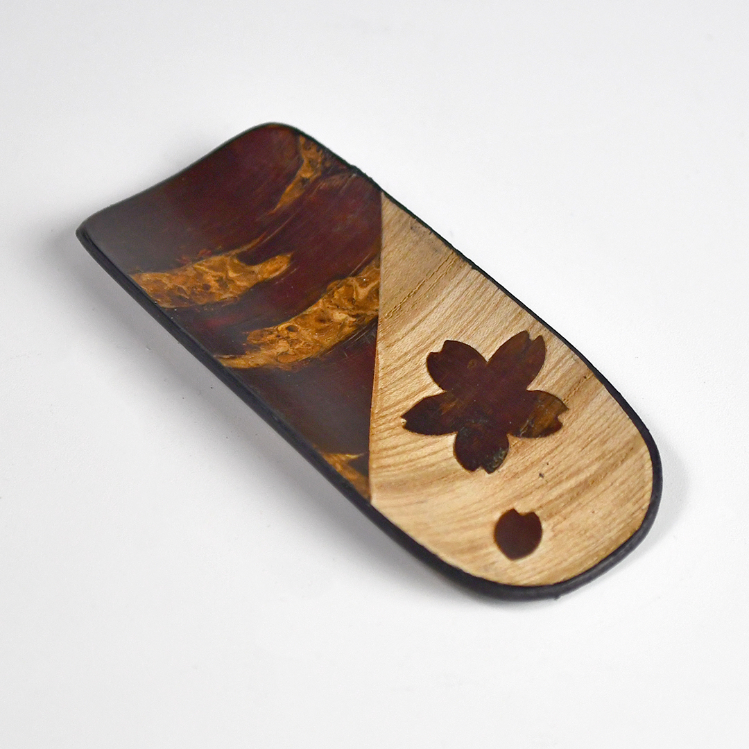 Kabazaiku, or cherry bark work, was developed as a craft during the 18th century in Akita Prefecture, Japan. It is still popular today and owes it appeal to the humble and natural beauty of the bark. Thin layers of bark are carefully culled from wild cherry trees, and used to create lovely decorative items such as tea containers, scoops and trays. The natural markings of cherry bark adds a pleasant appearance while the glossy sheen of the bark lends a touch of elegance.