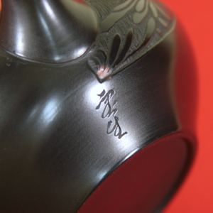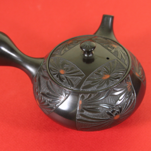 The first time I saw this teapot in a photograph it took my breath away. When it arrived from Japan and I took it out of the box I decided that it was the most perfectly rendered hand-made object that I have ever held. This teapot is simply glorious and it is a joy to behold. It is jet black and very dramatic, and Hosei shows us with this teapot why he is a master of the technical aspects of carving.