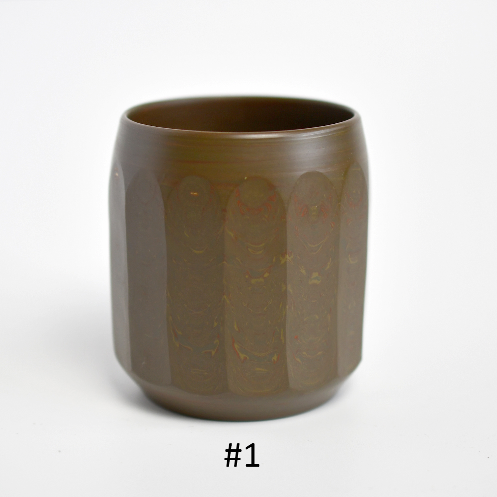 These cups are thin-walled, very light and delicate-looking but are constructed from multiple layers of clay so are very heat-retaining and durable. The clay feels wonderfully cool and the faceted design of the cup is pleasing to hold.