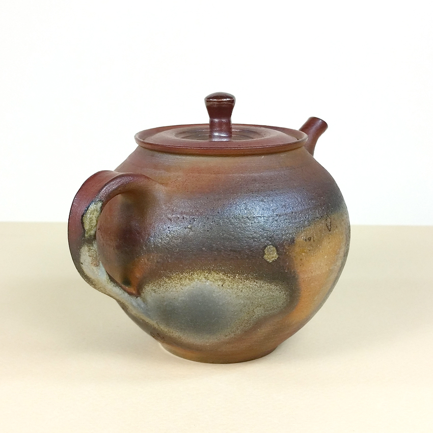 He fires his pots in a wood-fired anagama kiln only once-a-year, so we are thrilled to have a few choice pieces of his work. Tanikawa Katsuaki achieves glorious yohen effects from the fire in the kiln such as scorch marks, flashing, and fly-ash glazes. These distinctive patterns give his teapots a unique appearance and makes them truly one-of-a-kind items.