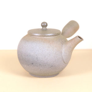 The surface of the teapot has a smooth, fine-textured, matte or sueded finish, and the clay features many small black speckles. There is some color flashing (yohen) on the teapot which has been contributed by the wood kiln from the placement of the teapot in relation to flame.
