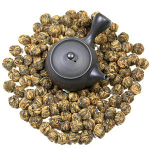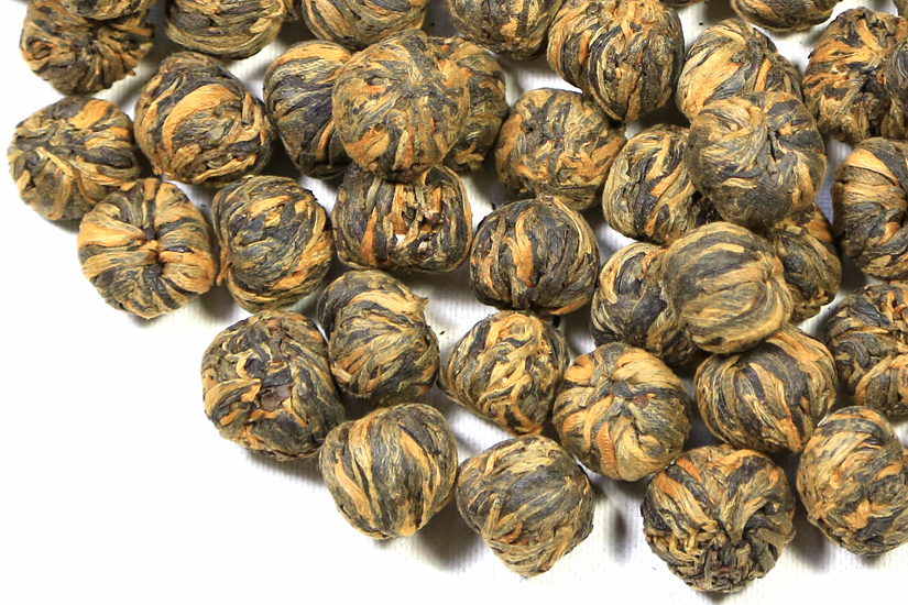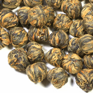 Our Yunnan Black Marbles are quite an unusual black tea. Unlike loose leaf black tea, these uniformly-sized, hand-rolled & tied marbles require multiple infusions to release all the flavor that these bundled leaves have to give. We re-steep almost all Yunnan Black teas, but with these it is essential!